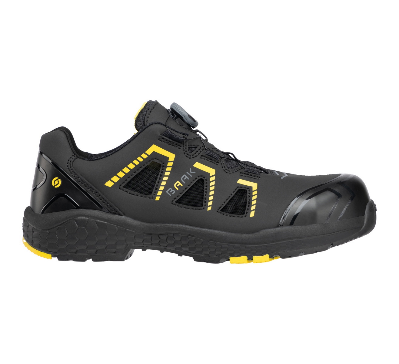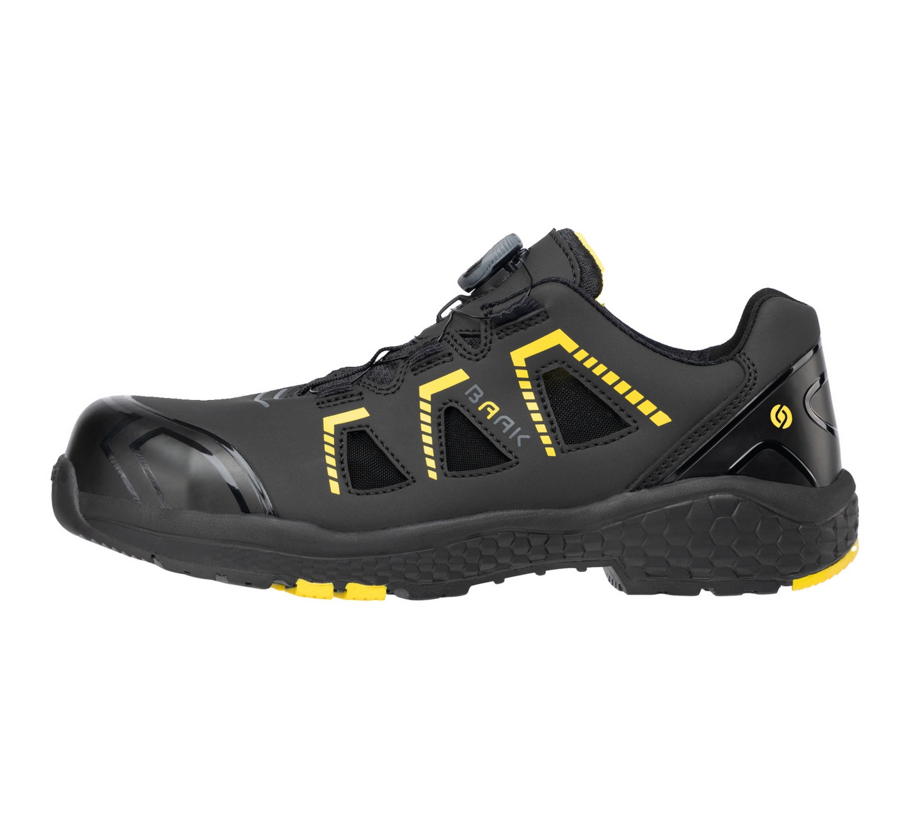 Microfaser mit TPU-Schutz an Spitze und Ferse; Sandwich-Textilfutter Baak®go&relax-System; Composite Baak Flexkappe; Softstep+ Einlegesohle Baak NeoShield Durchtrittschutz; EVA/Gummi-Sohle Weite 11