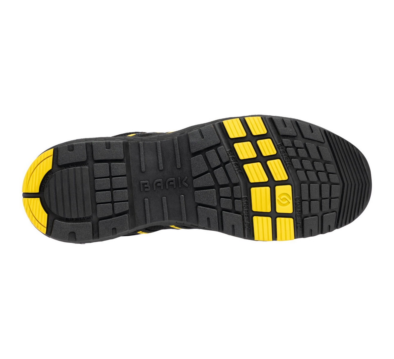 Microfaser mit TPU-Schutz an Spitze und Ferse; Sandwich-Textilfutter Baak®go&relax-System; Composite Baak Flexkappe Softstep+ Einlegesohle; Baak NeoShield Durchtrittschutz; EVA/Gummi-Sohle Weite 11