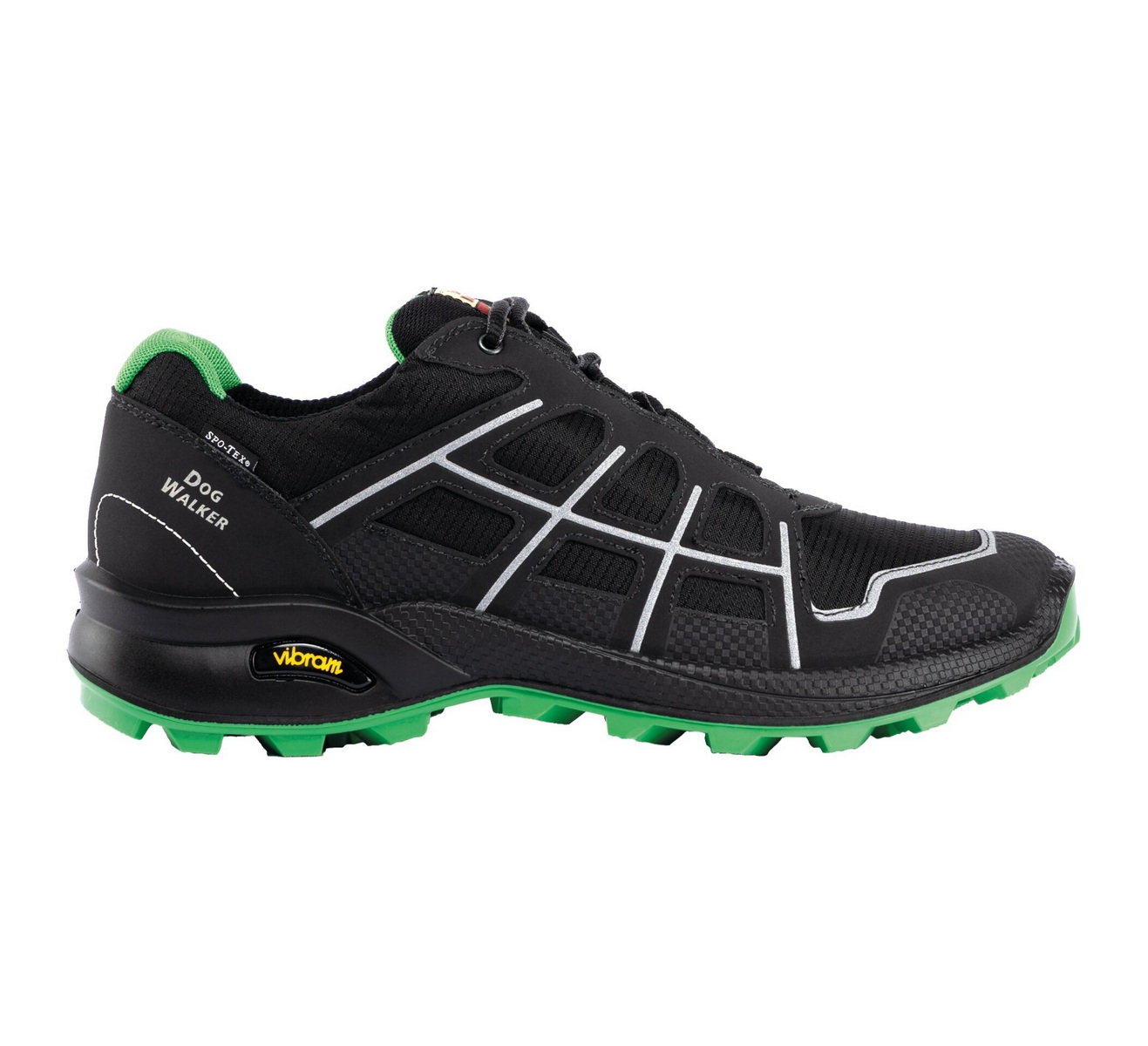Der Spezialschuh für Agility, optimal für einen griffigen Halt auf Wiesenboden Atmungsaktives, widerstandsfähiges High - Tech - Textil, komplett lederfrei Wasserabweisende, winddichte Spo - Tex - Membrane Anatomisch geformtes Klimafußbett Robuste Vibram - Gummi / PU Laufsohle mit stollenartigem, selbstreinigendem Profil