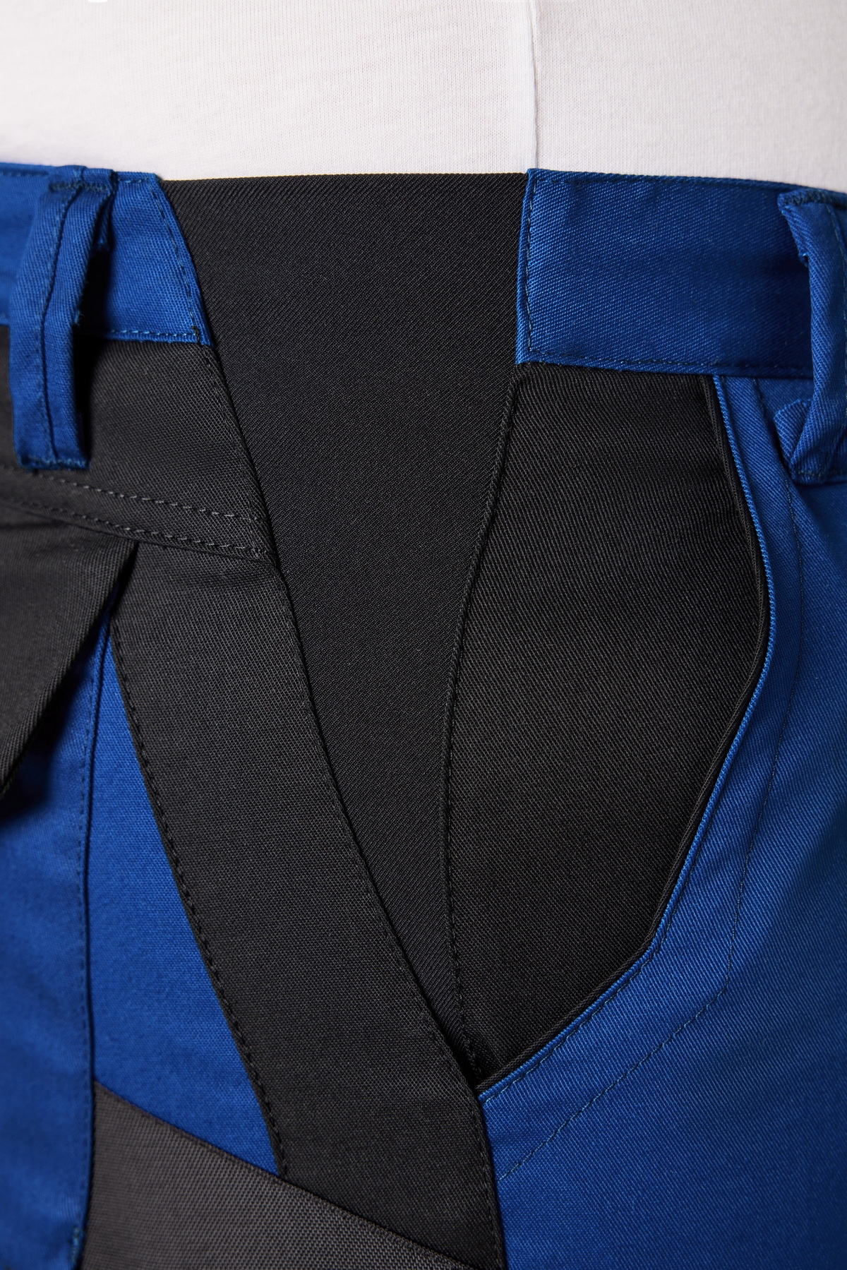 extra für FHB entwickeltes Gewebe im perfekten Mischungsverhältnis von Baumwolle und Polyester 50% Baumwolle / 50% Polyester - ca. 250 g/qm 1 Handy- und 1 Zollstocktasche links und rechts, 2 geräumige Gesäßtaschen Zusatzfächer für Stifte, Cutter und Messer auf der linken Seite großzügige Volumentasche auf der rechten Seite, hoher geschnittener Bund im Rücken