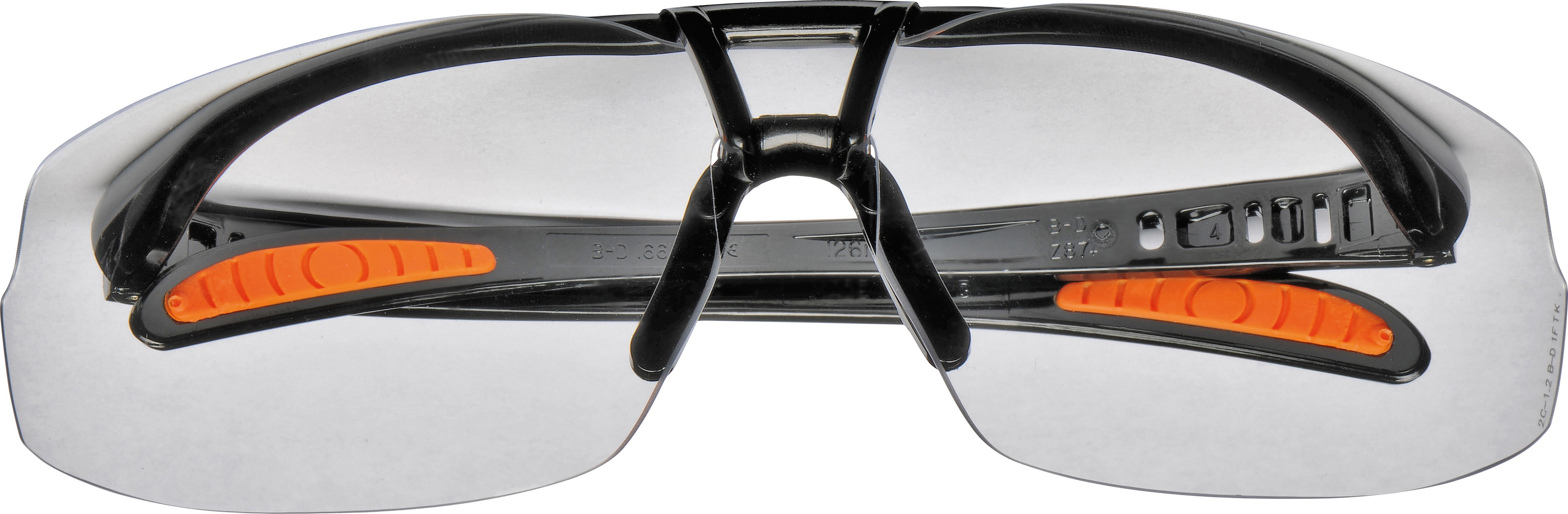 Klare, große Polycarbonat-Scheibe mir Supra-Dura Kratzfestbeschichtung Weicher Nasensteg - verhindert das Rutschen, bequemer und sicherer Sitz Weiche Polster an den Bügelenden sorgen für angenehmen Sitz hinter den Ohren Zur Anwendung im Innenbereich, auch bei extremen Bedingungen. Schutz gegen allgemeine Gefahren und fliegende Teilchen Box = 10 Stück