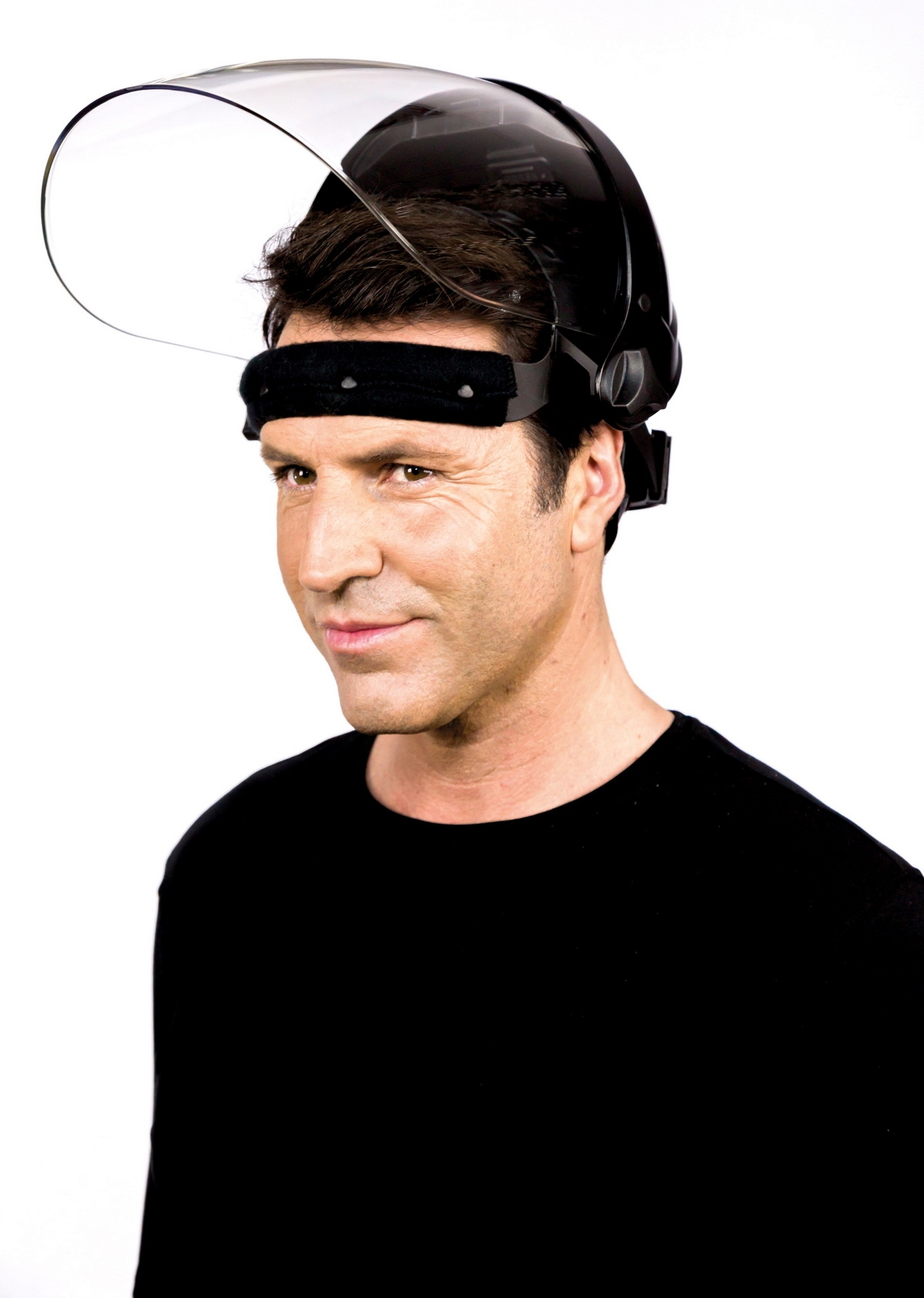 Die flexible Hinterkopfauflage bietet eine 300 % größere Kontaktfläche als herkömmliche Kopfhalterungen, um Druckpunkte zu verhindern, damit der Gesichtsschutz den ganzen Tag getragen werden kann. Die große Auswurftaste ermöglicht den einfachen Austausch des Visiers in Sekunden. Individuelle, komfortable Passform: Die Drehknöpfe sind groß und ergonomisch gestaltet, damit sie einfach eingestellt werden können - sogar mit Handschuhen. Der besondere Klappmechanismus des Helmhalters vergrößert den Freiraum über dem Kopf um ganze 100 mm und hält die Zubehörschlitze für die Kombination mit weiterer PSA frei. VE = 1 Stück