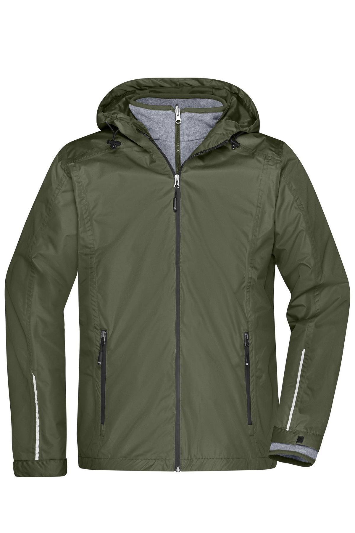 Funktionelle Doppeljacke, 3 Tragevariationen, vielseitig einsetzbar, Fleece-Innenjacke leicht auszippbar Außenjacke: Wind- und wasserdichtes, robustes Material (5.000 mm Wassersäule), atmungsaktiv und wasserdampfdurchlässig Angeschnittene, regulierbare Kapuze, modische, reflektierende Details an Ärmel und Rückenteil 2 seitliche Taschen mit Reißverschluss, 1 Innentasche, alle Reißverschlüsse sind wasserdicht Fleece-Innenjacke: Pflegeleichte Fleecejacke in Melange-Optik mit kontrastfarbiger Einfassung, 2 seitliche Taschen, Stehkragen