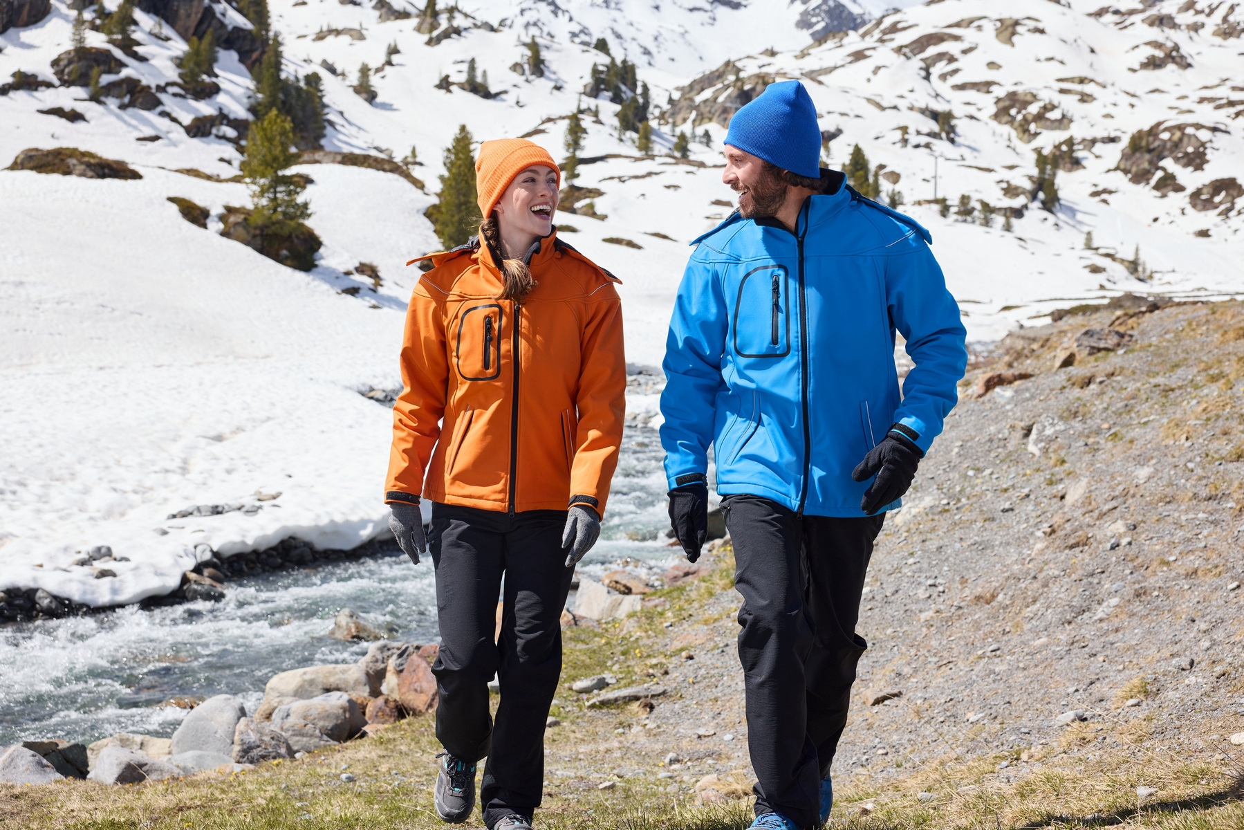 Modische Winter Softshelljacke, Oberstoff: 95% Polyester, 5% Elasthan 3-Lagen Funktionsmaterial mit TPU-Membran, modische Reflexpaspel an Schultern und Fronttaschen Wind- und wasserdicht (5.000 mm Wassersäule), atmungsaktiv und wasserdampfdurchlässig Abzippbare, gefütterte und wattierte Kapuze, wärmender Fleecekragen, 2-Wege-Reißverschluss 2 Fronttaschen, 1 Brusttasche, innenliegende Brusttasche und Handytasche