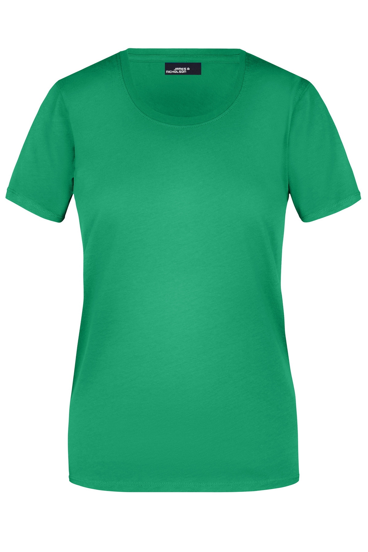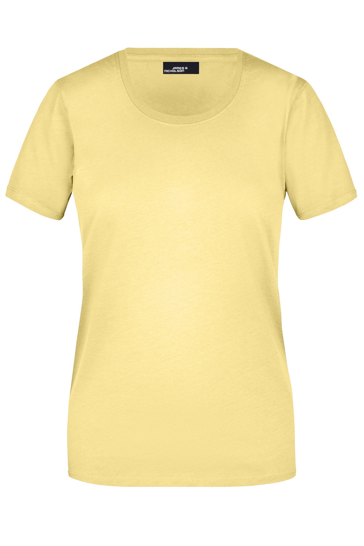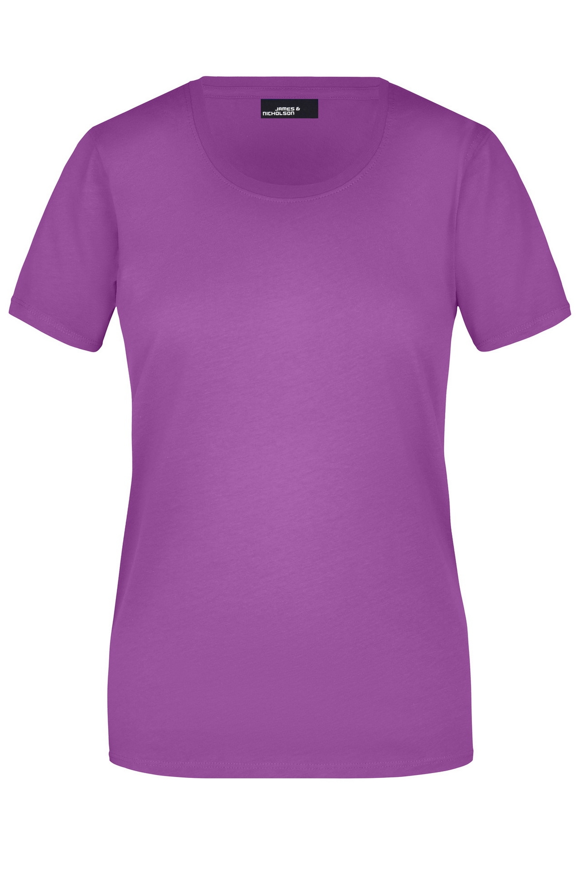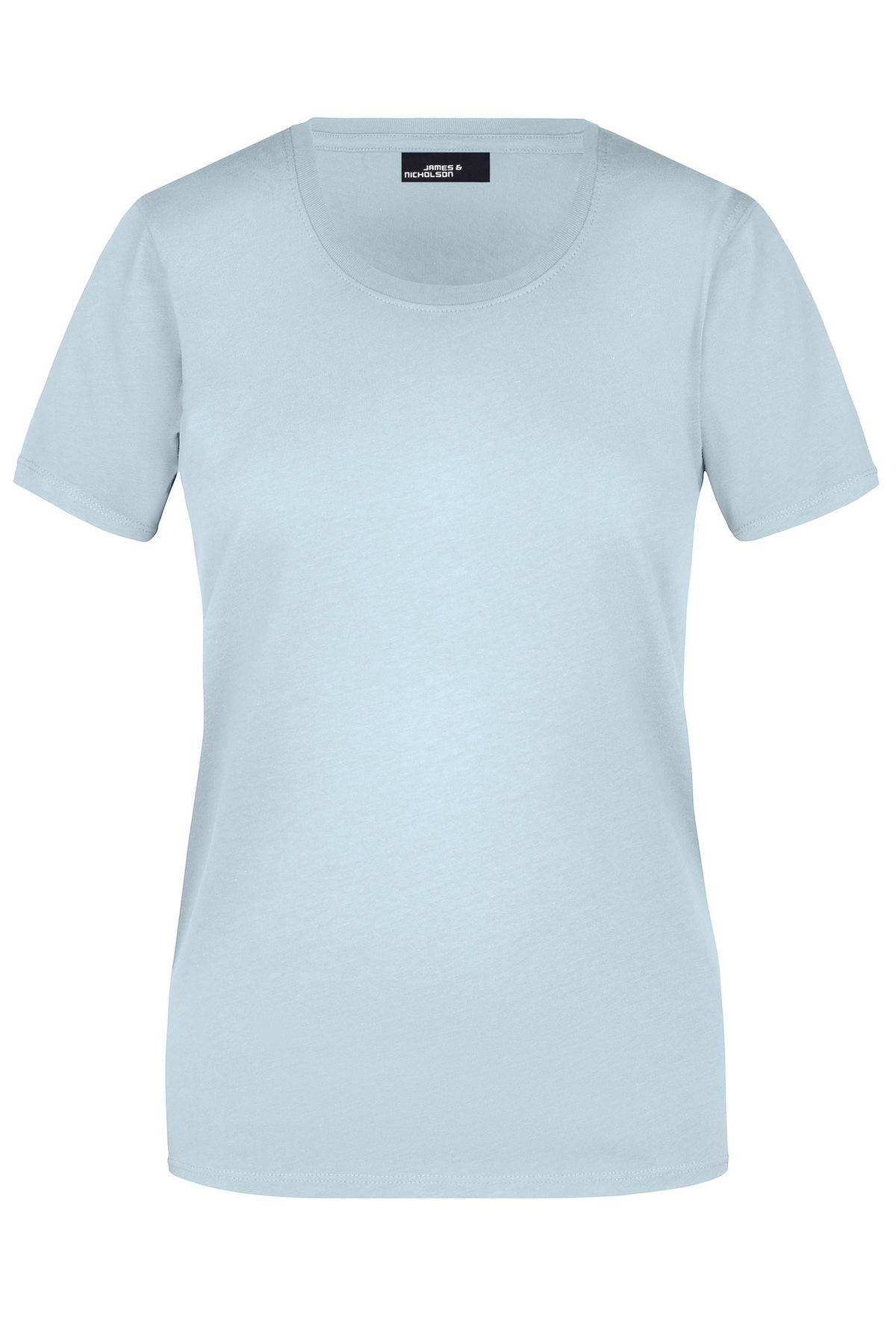 leicht tailliertes T-Shirt, Oberstoff: 100% Baumwolle - ca. 150 g/qm gekämmte, ringgesponnene Baumwolle Rundhalsausschnitt mit Elasthan, Necktape, mit Seitennaht Doppelnähte an den Schultern und Halsausschnitt 40°C waschbar
