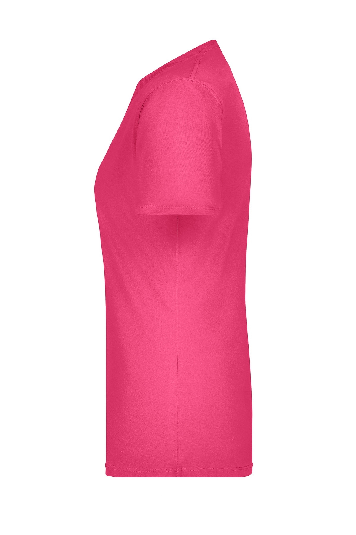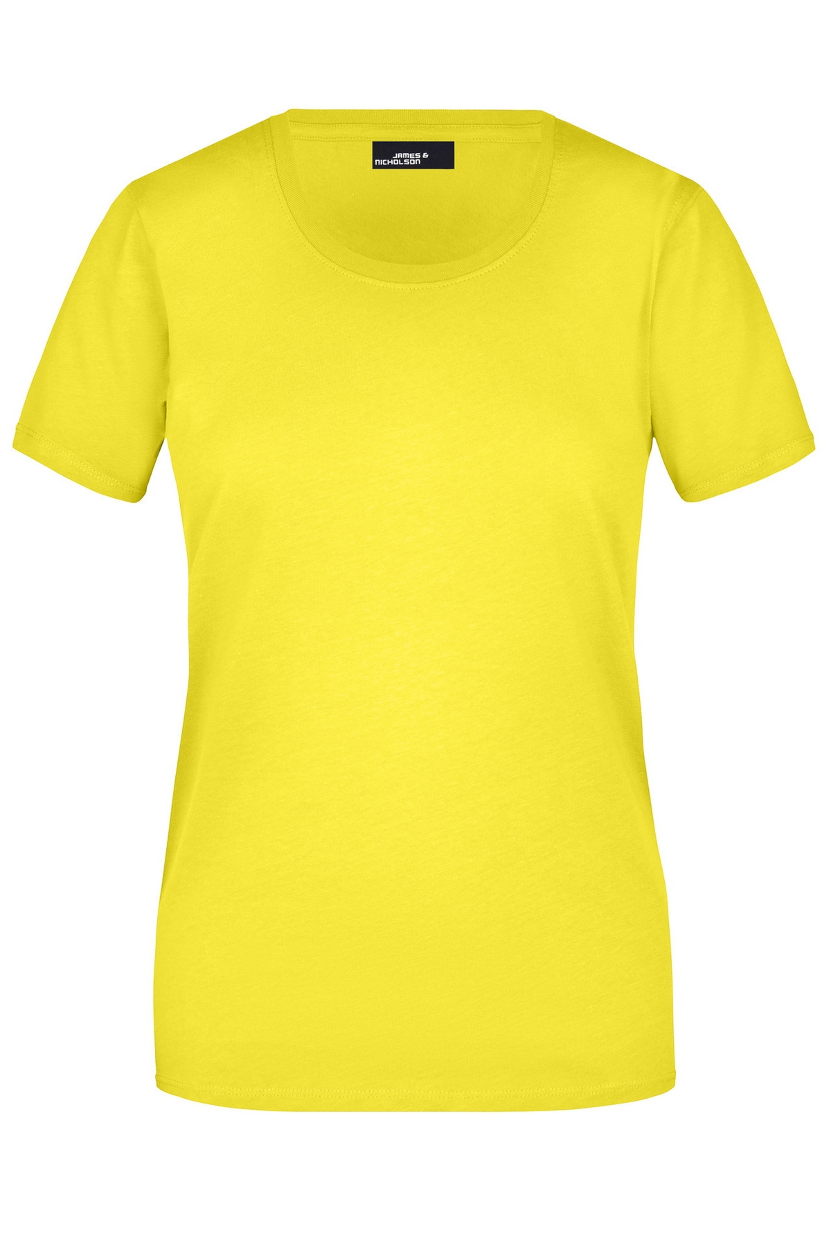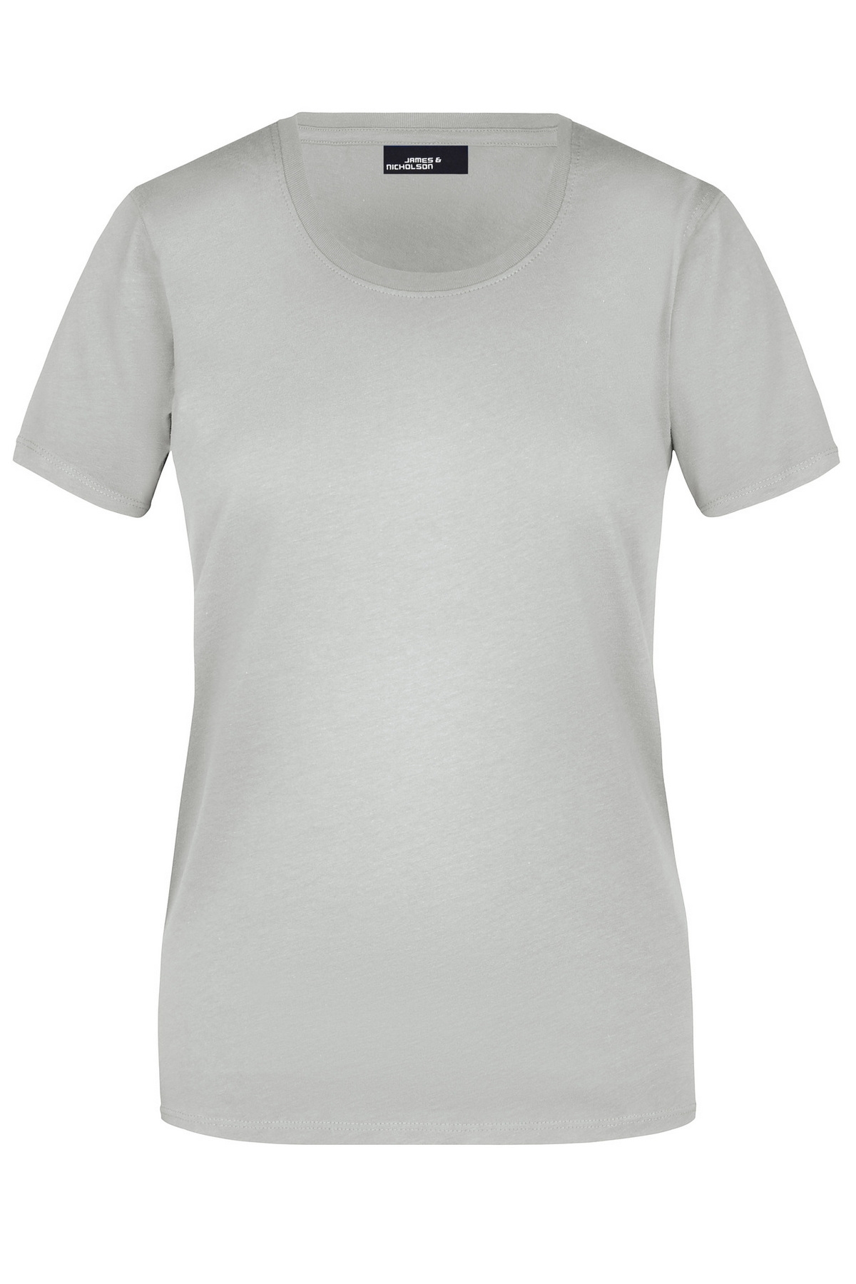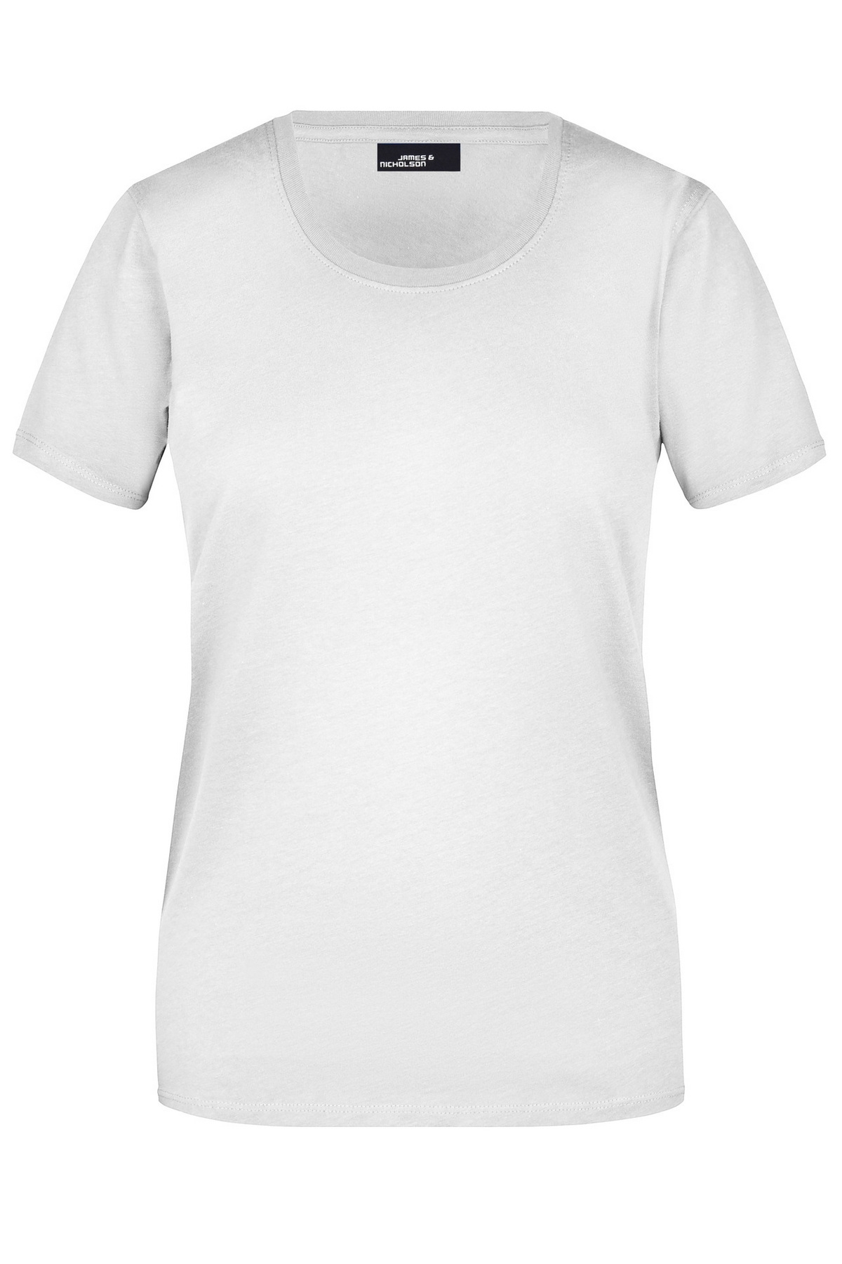 leicht tailliertes T-Shirt, Oberstoff: 100% Baumwolle - ca. 150 g/qm gekämmte, ringgesponnene Baumwolle Rundhalsausschnitt mit Elasthan, Necktape, mit Seitennaht Doppelnähte an den Schultern und Halsausschnitt 40°C waschbar