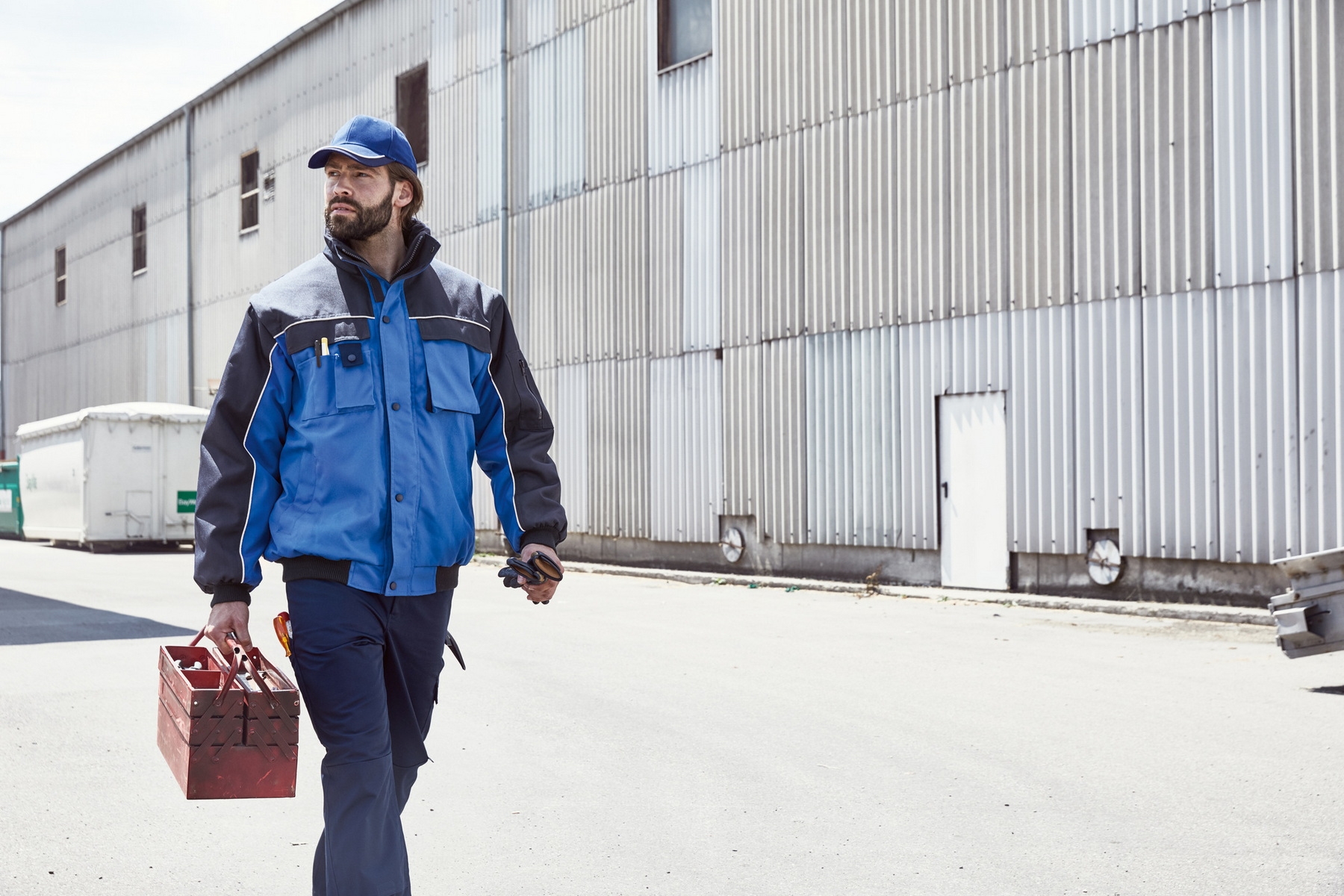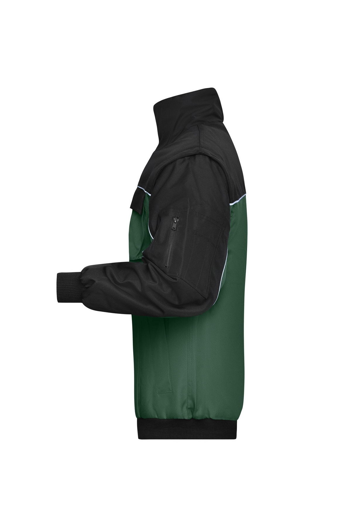 Oberstoff: 100% Polyester / Futterstoff: 100% Polyamid / Wattierung: 100% Polyester Robuste, wattierte Jacke mit abnehmbaren Ärmeln. Wind-, wasser- und schmutzabweisend (600 mm Wassersäule) Ärmel mit Reißverschluss abnehmbar. Kragen-Innenseite aus wärmendem Fleece. 2 große Brusttaschen, Handytasche und Stiftehalter auf rechter Brusttasche. Praktische Ärmeltasche mit Reißverschluss. 2 geräumige Innentaschen, Handytasche. Strickbündchen an Ärmeln und Bund. Reflexpaspel (ohne Schutzfunktion) in Vorder-, Rückenteil und an den Ärmeln. Veredelungsreißverschluss Brusttasche und Rücken. 30°C waschbar, zum Bügeln geeignet